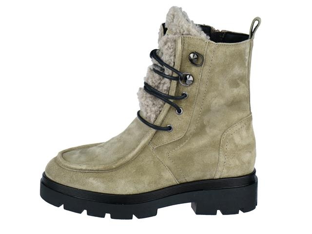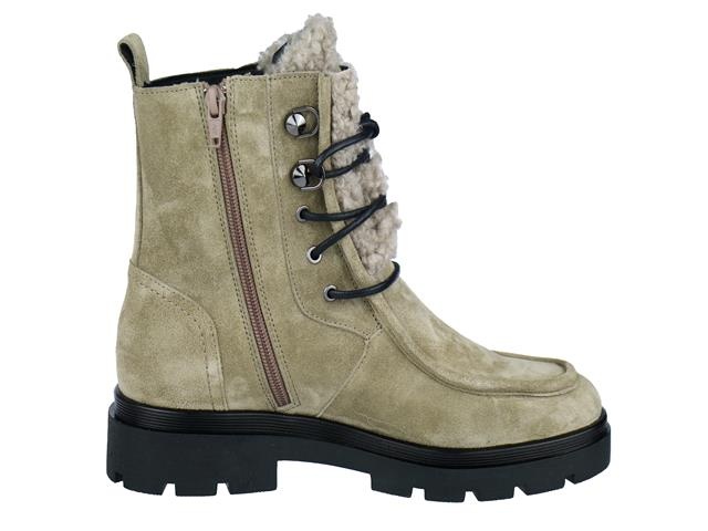 PiediNudi hippe en trendy dames enkellaars. Deze veterboot van PiediNudi heeft als modelnaam Alba en het artikelnummer is: 02.03. De kleur is warm stone in het suede leer. De laars heeft een trendy vetersluiting en een vachtaccent op de tong. Aan de binnenzijde zit een ritssluiting voor extra draag gemak. De voering is van leer met een leder uitneembaar voetbed. De wijdtemaat is H, dit betekent dat de schoen geschikt is voor smallere tot bredere voeten.