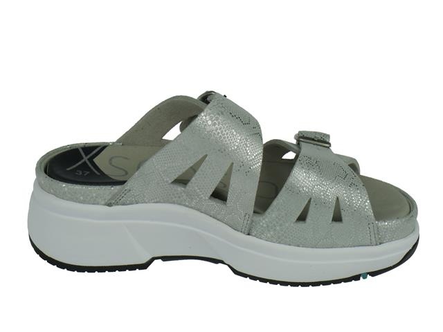Xsensible comfortabele en moderne slipper. Deze slipper van Xsensible heeft als modelnaam Jamaica en het artikelnummer is: 30704.5.910. Deze comfortabele slipper heeft een speelse uitstraling dankzij de fijne bandjes en zilverwerk. De vrouwelijke slipper is uitgevoerd in hoogwaardig leer en heeft twee bandjes met geraffineerde cut-outs. De bandjes zijn afzonderlijk verstelbaar met een metalen gesp, zodat de slipper perfect aan elke voet past. Voor een nog persoonlijkere en perfecte pasvorm kan de extra inlegzool, die in de zool is geïntegreerd, eventueel door een eigen inlegzool worden vervangen. De iets dikkere zool met de unieke Xsensible balanstechnologie staat garant voor optimaal loopcomfort.