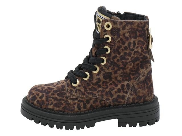 Red-Rag hippe en trendy meisjes veterboot. Deze bikerboot van Red-Rag heeft als artikelnummer 12542-059. De kleur is leopard fantasy oftewel een donker taupe leopard print in het suede leer. Daarnaast heeft deze veterschoen een subtiele gesp om de hiel. Naast de vetersluiting heeft de schoen ook een ritssluiting aan de binnenzijde. De voering is van leer met een leder uitneembaar voetbed.